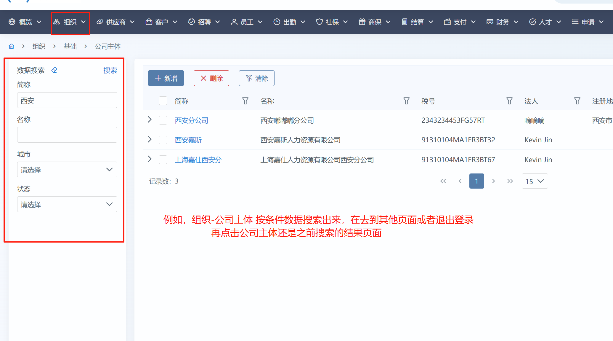 【全局-搜索问题】任意页面数据搜索后,去到其他页面或退出账号,再点击之前搜索的页面,数据未重置