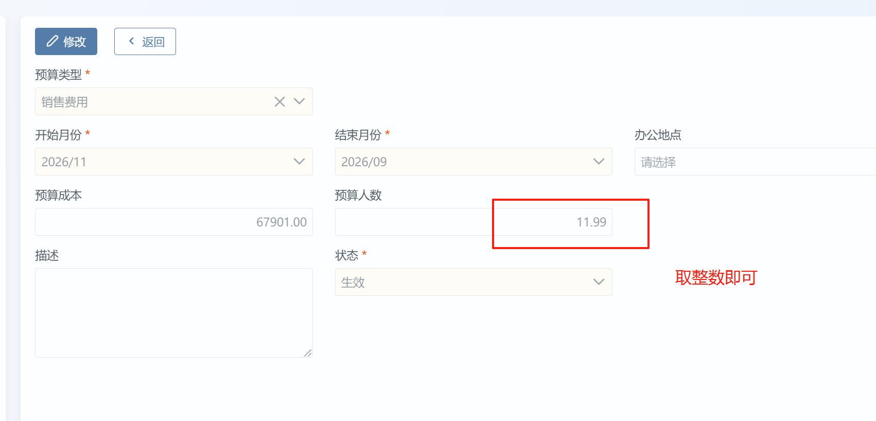 【组织-成本中心预算&职位预算】预算人数填写没有卡控@通过