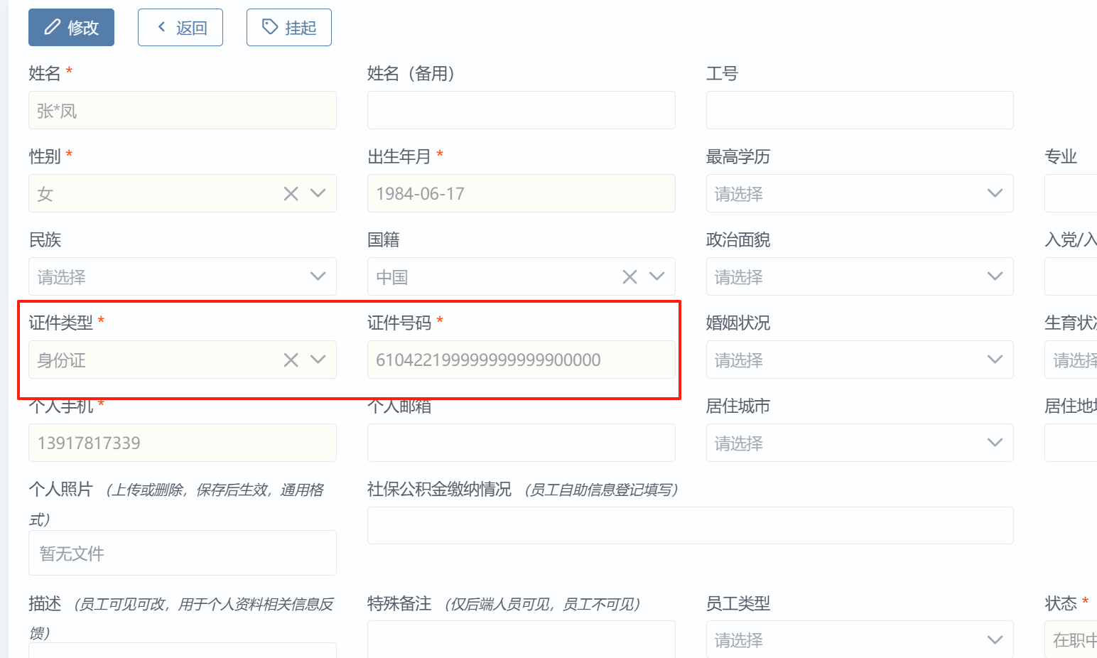 问题③ 身份证号填写错误未作卡控,证件类型要与证件号码匹配