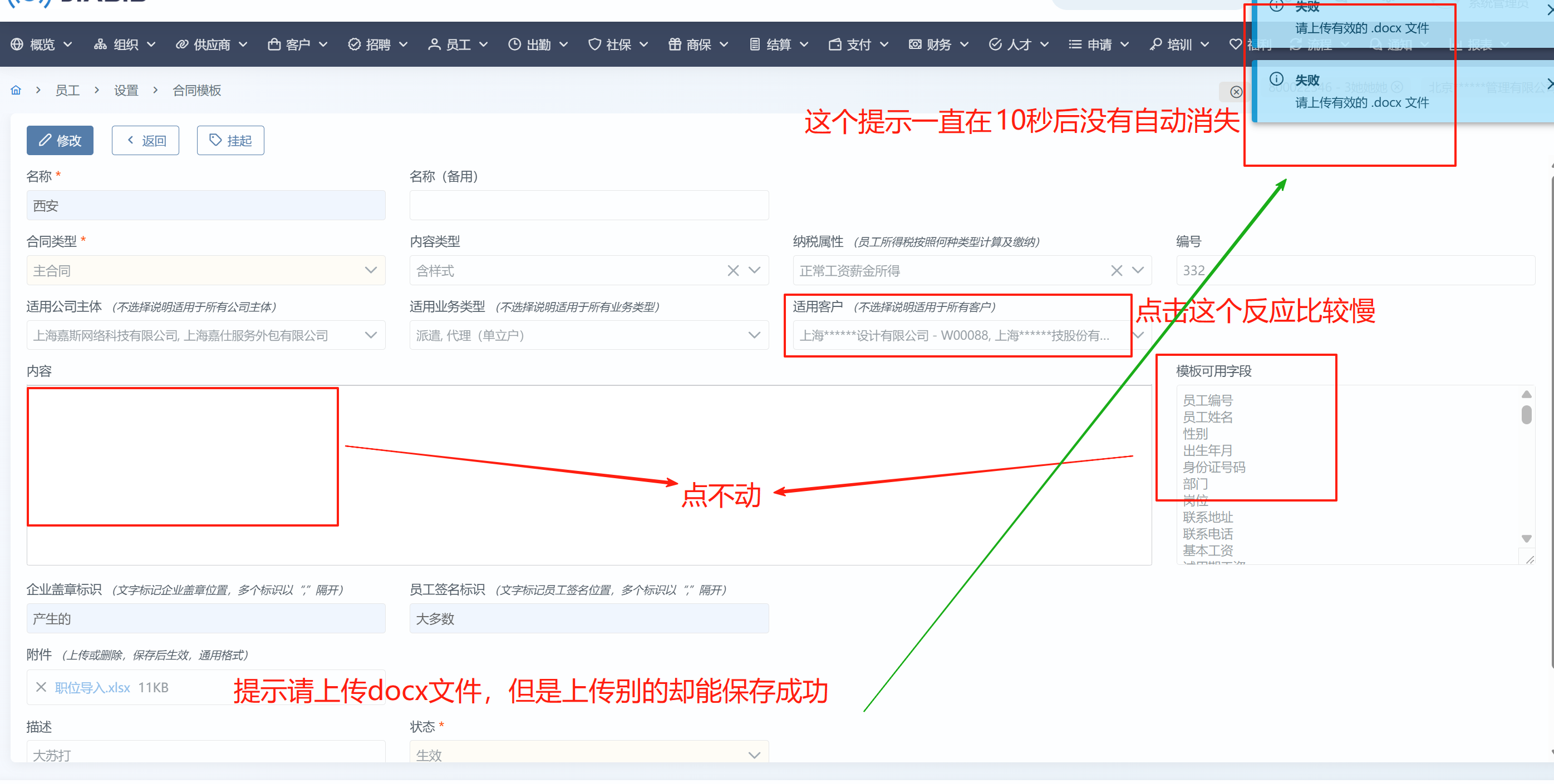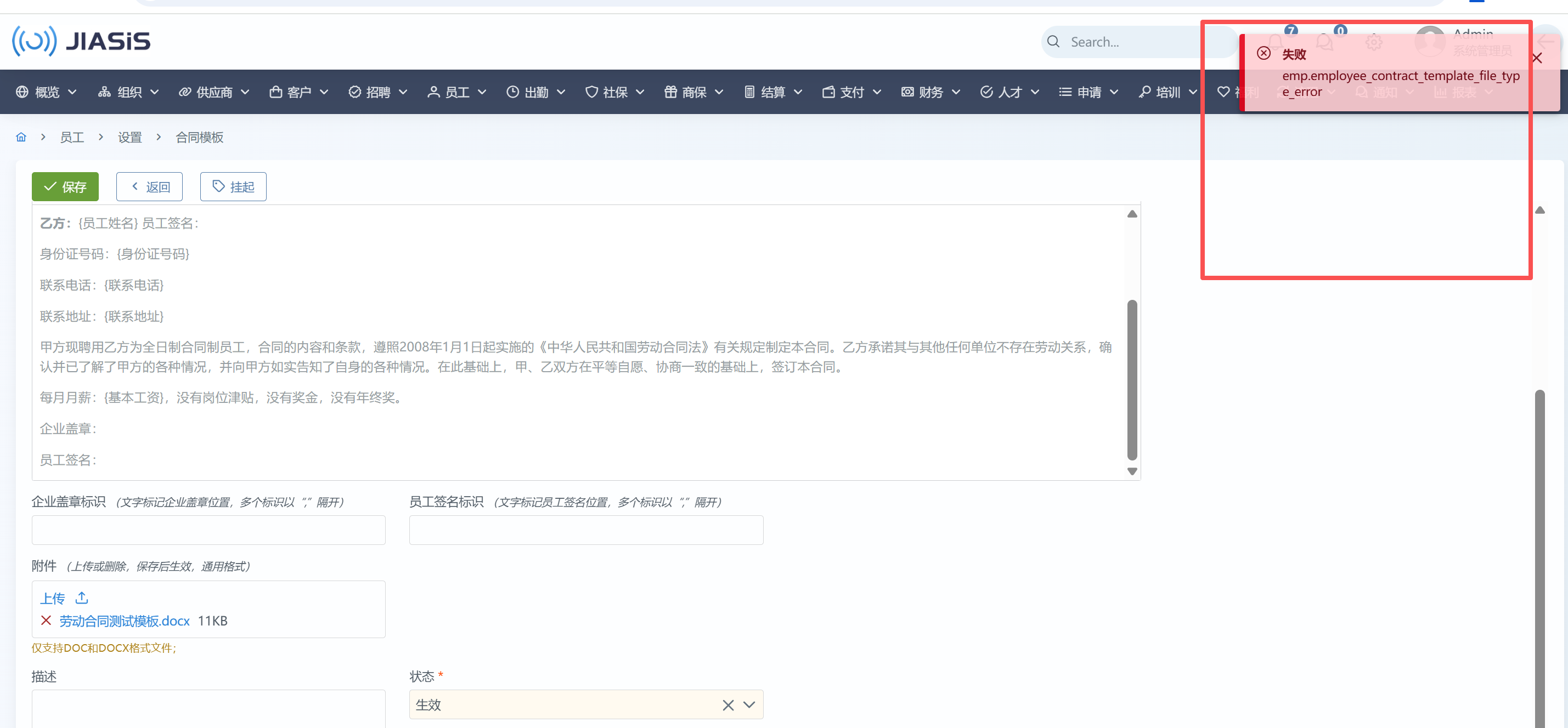 • 主题【员工—设置】合同模板,文件模板@未通过 变更为 【员工—设置】合同模板,文件模板