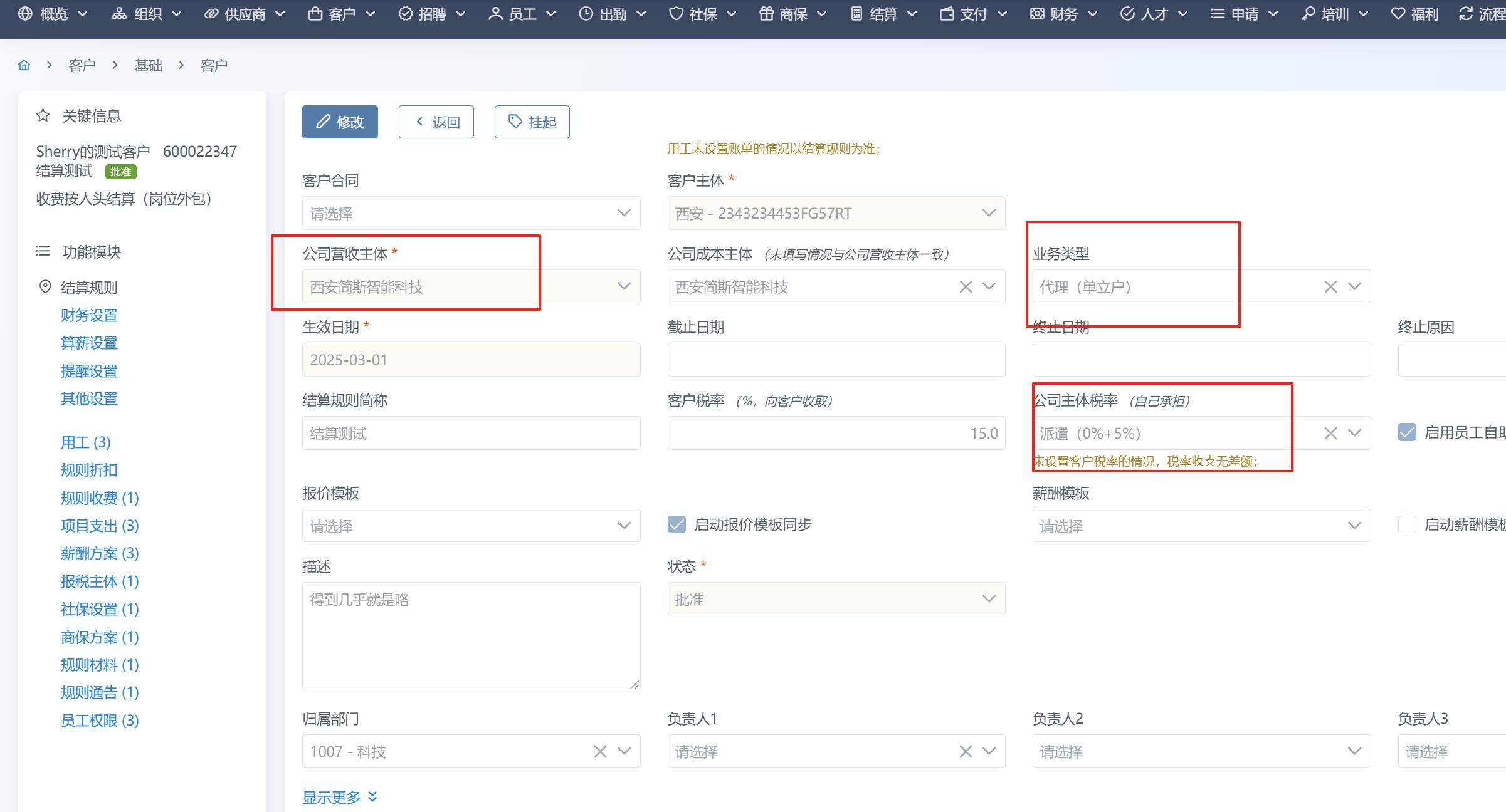 【客户—出勤规则】公司主体税率没有根据公司营收主体和业务类型做卡控选择