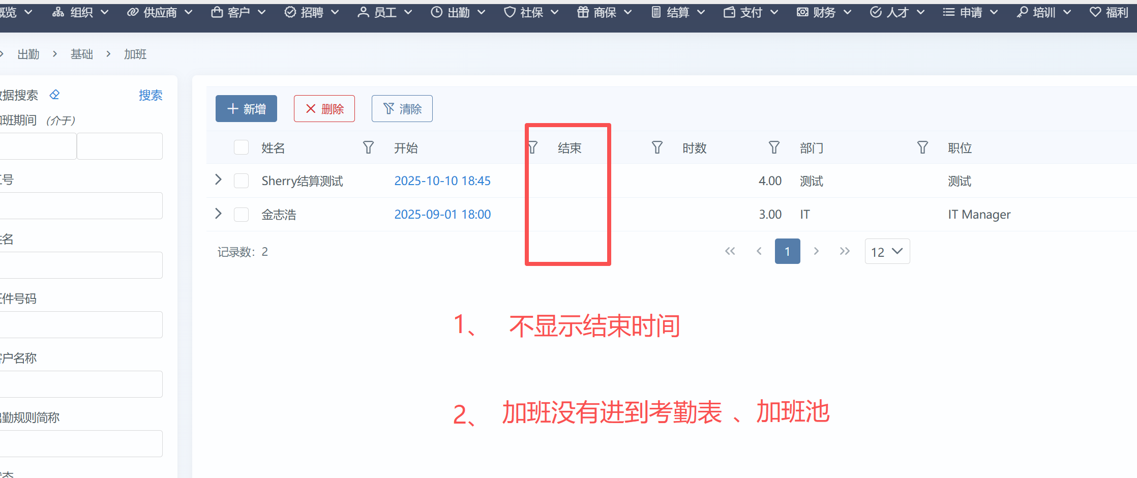 - 主题 从 【出勤—加班】@未通过:加班数据没有金到考勤表和加班池 变更为 【出勤—加班】@未通过:加班数据没有进到考勤表和加班池