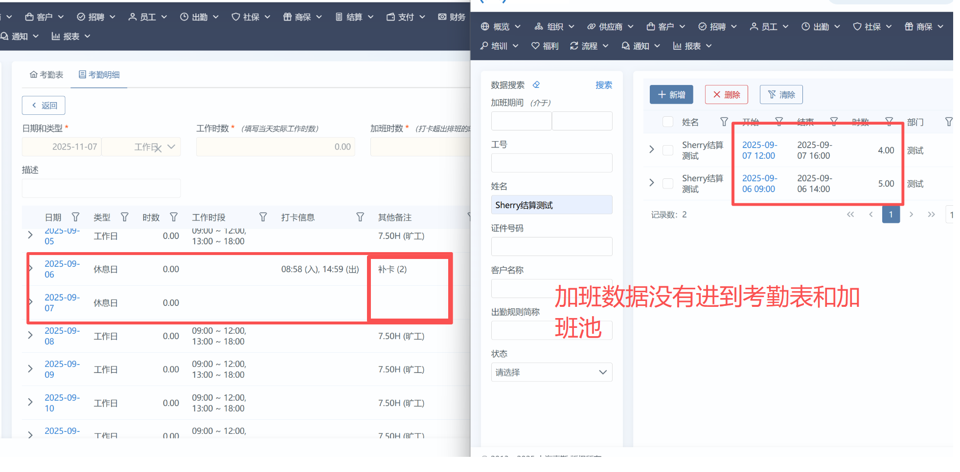 - 主题 从 【出勤—加班】@未通过 变更为 【出勤—加班】@未通过:加班数据没有金到考勤表和加班池