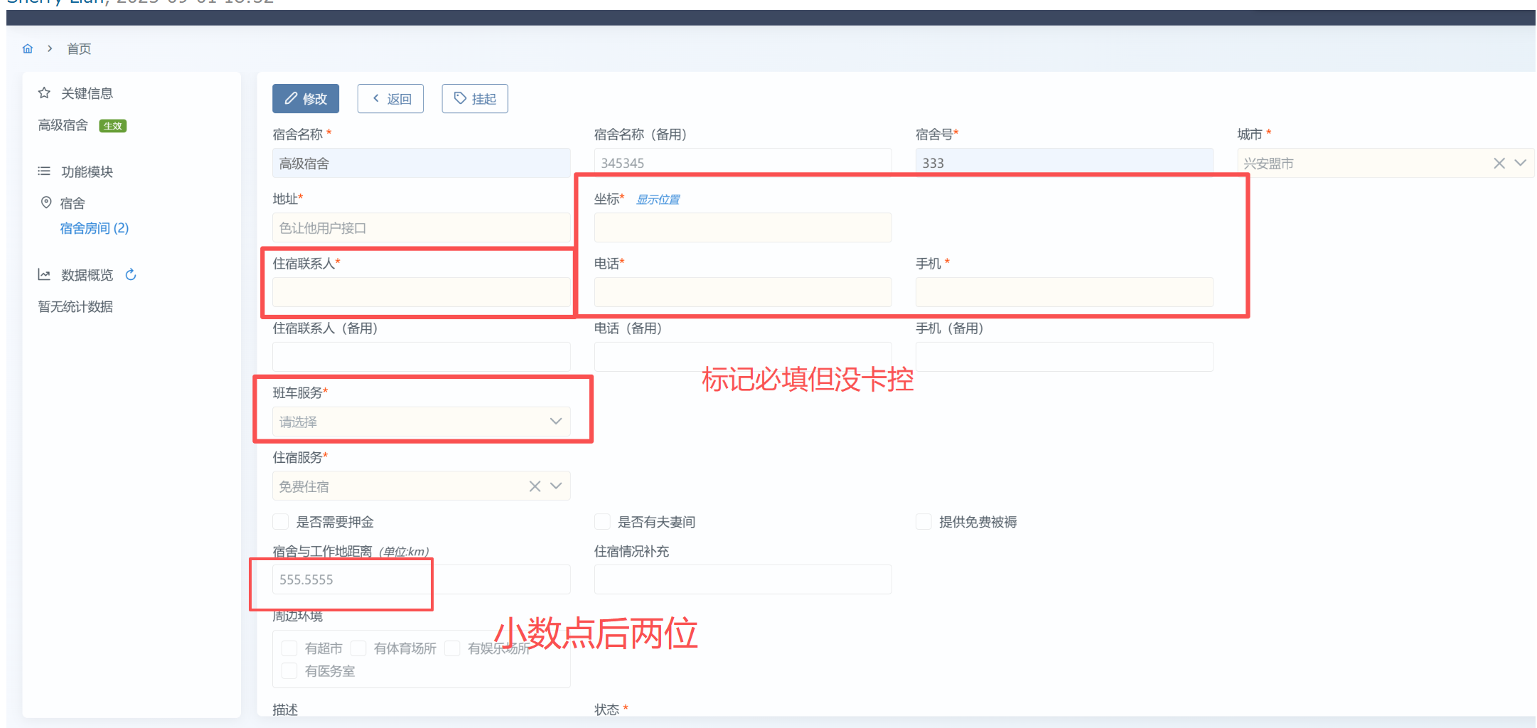 • 主题【系统设置—宿舍】 变更为 【系统设置—宿舍】@未通过