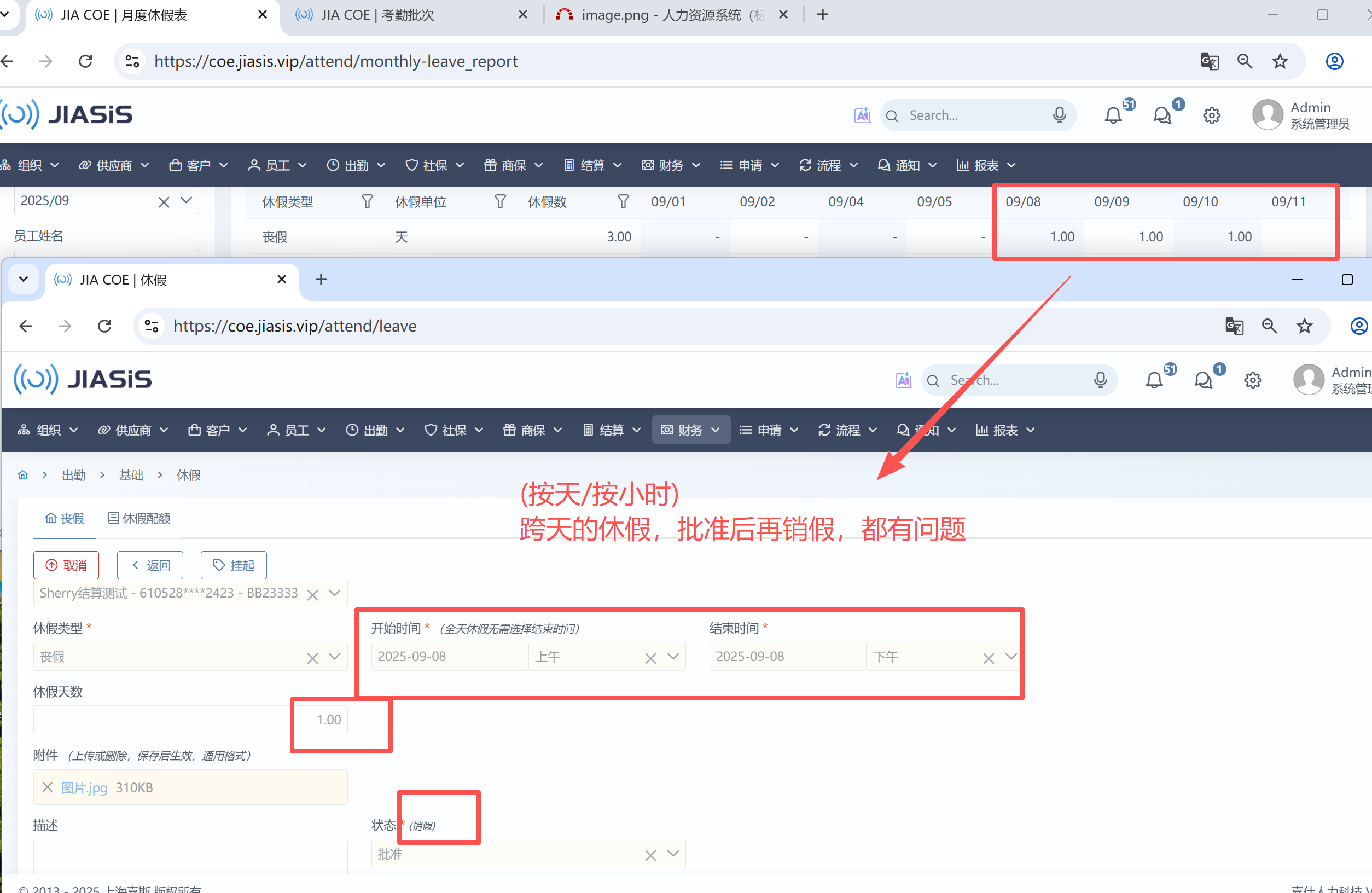 - 主题 从 【出勤—月度休假表】 变更为 【出勤—月度休假表】@未通过