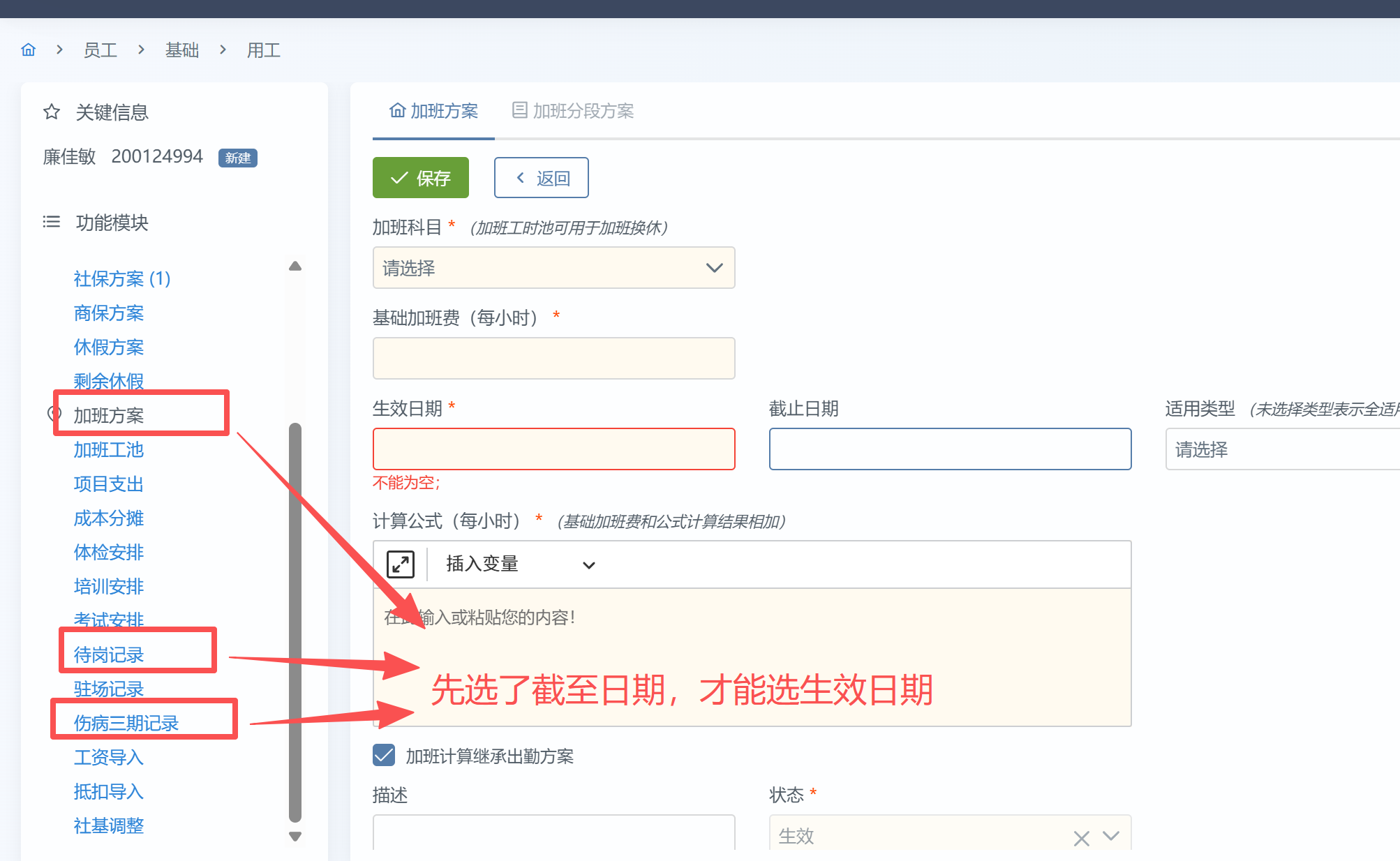 • 主题【用工】 变更为 【用工】加班方案,待岗记录,伤病三期