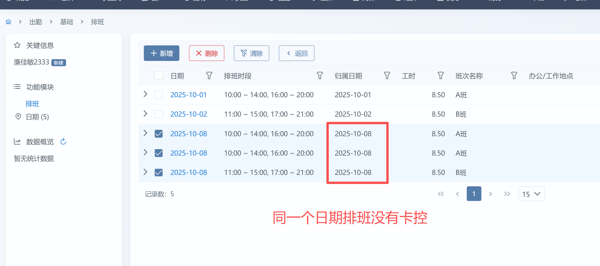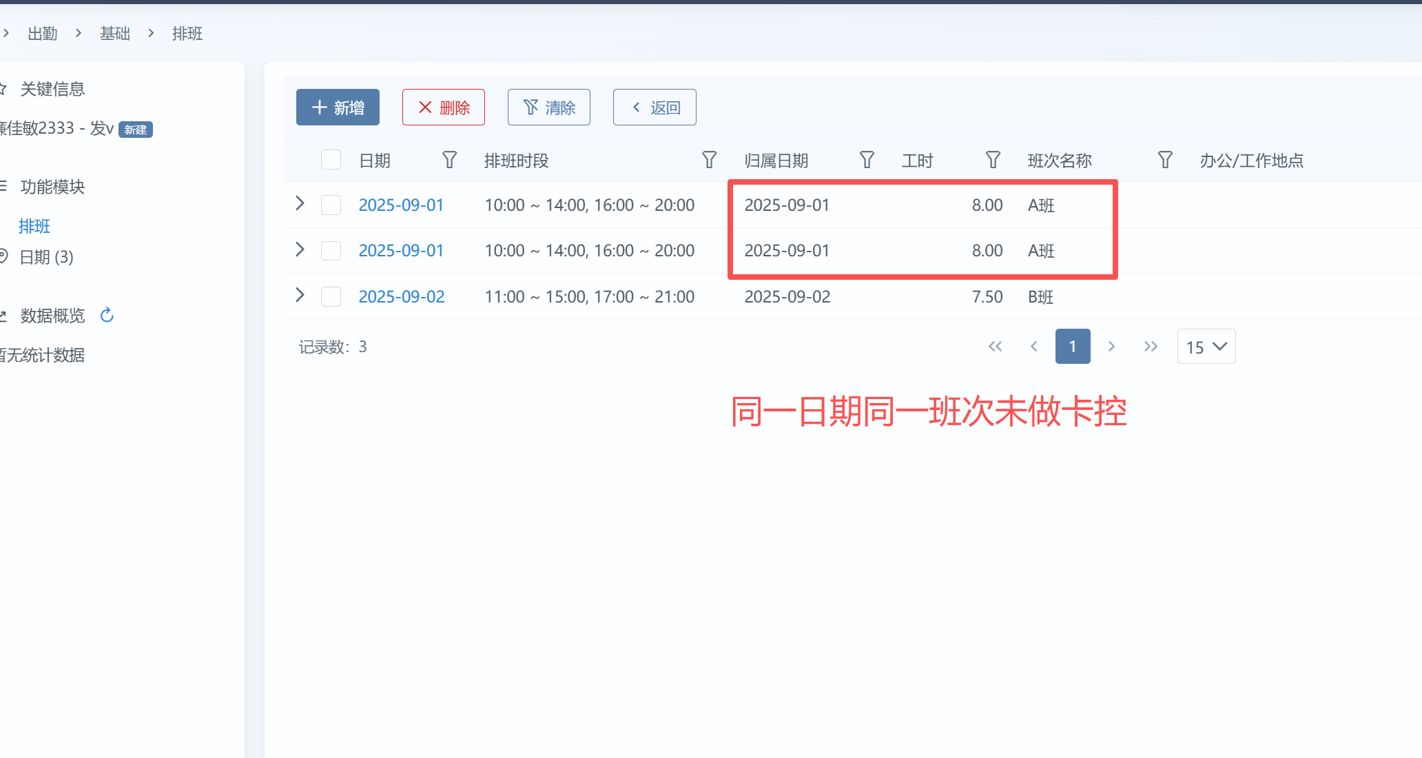 - 主题 从 【出勤—排班】 变更为 【出勤—排班】@未通过
