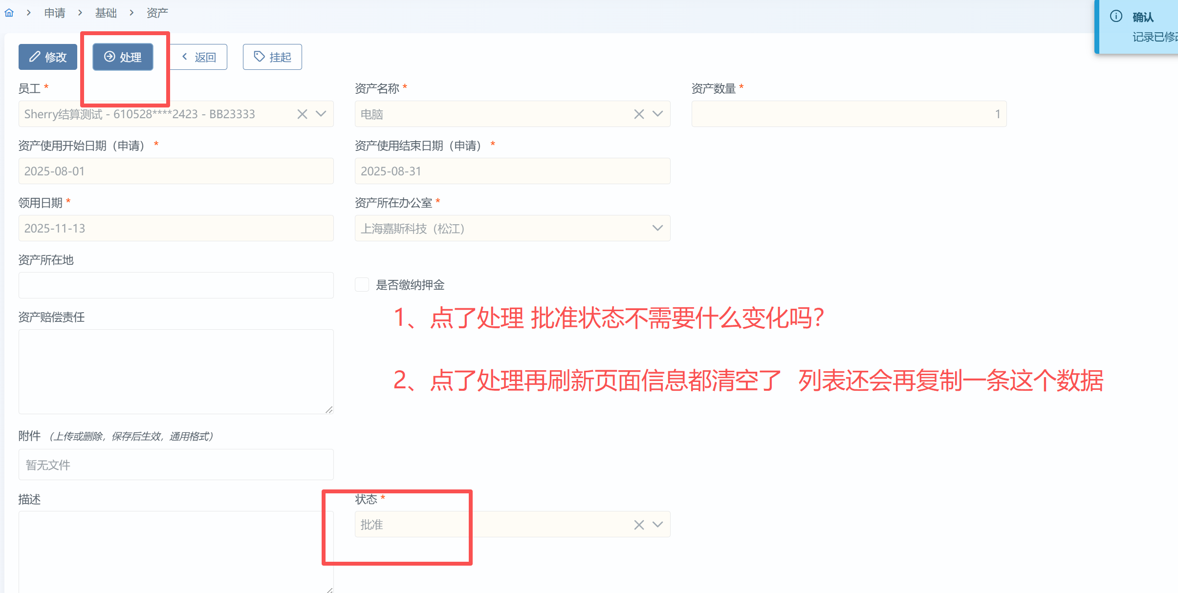 这个问题已修改,处理是在资产盘点处解决的,版本V6.0.21验证