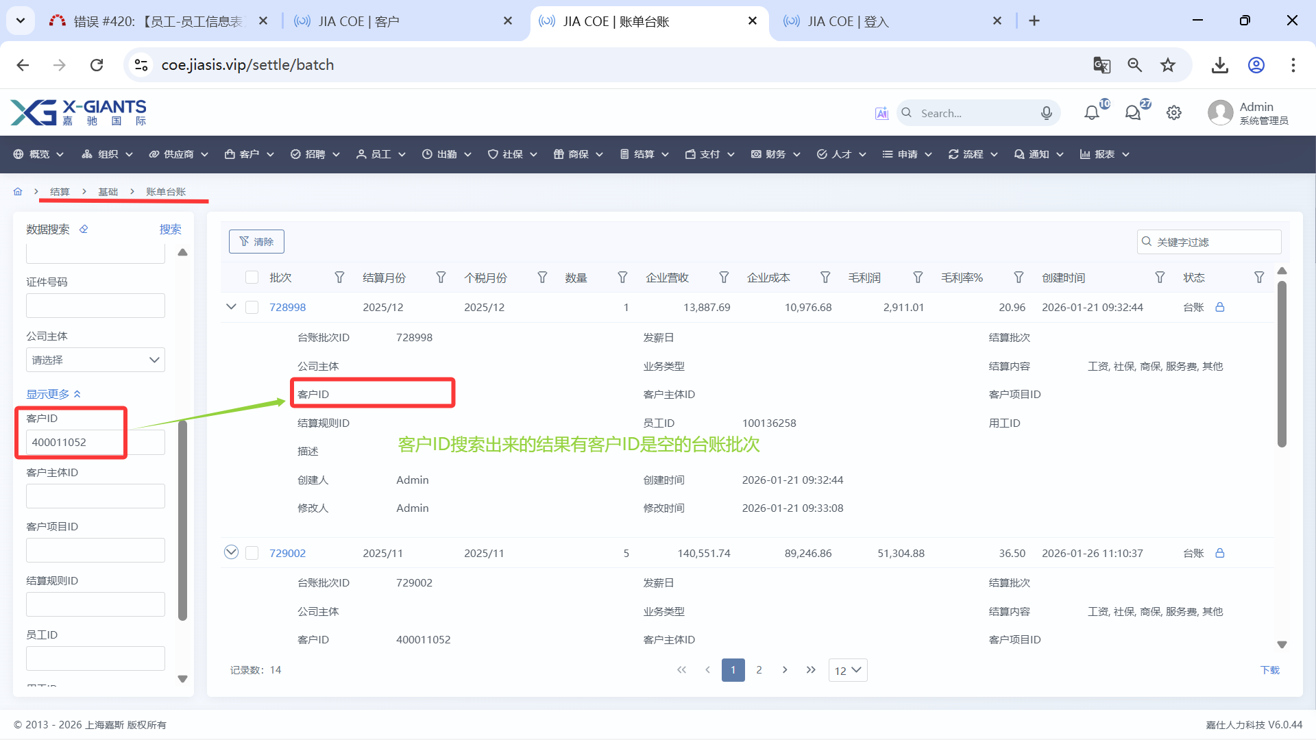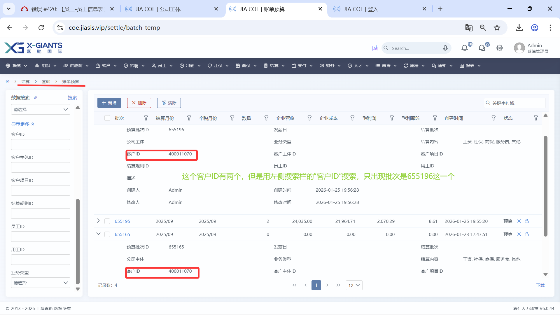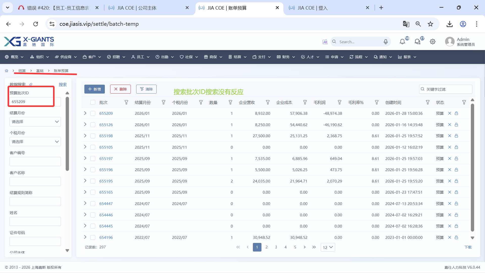 账单预算、账单台账、结算调整和调整审核的ID搜索没反应。账单预算和账单台账更多搜索出来与现有的不一致。