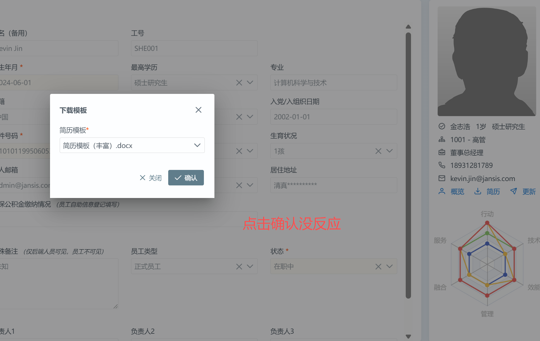 2. 需要能够显示相片及雷达图(岗位标准胜任力和胜任力评估结果)
